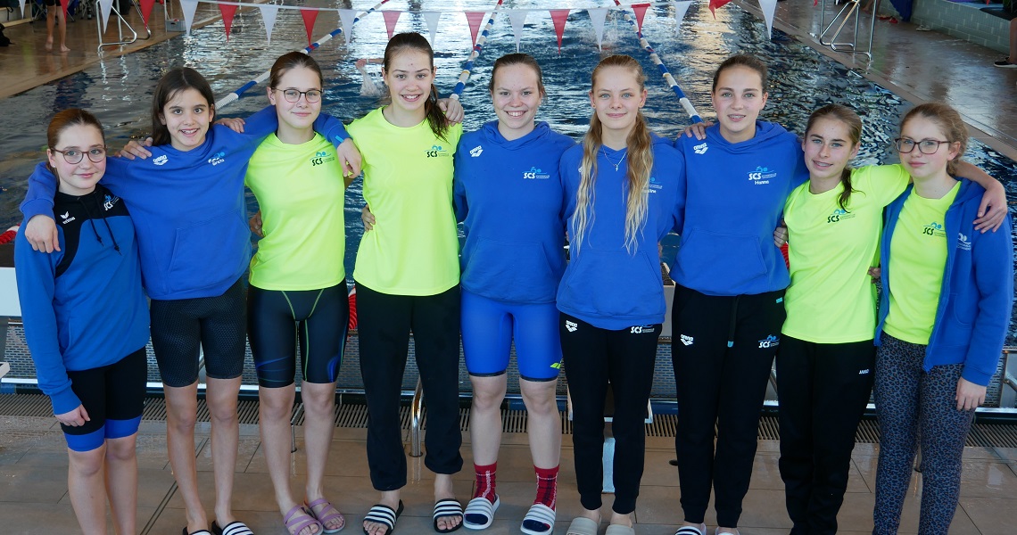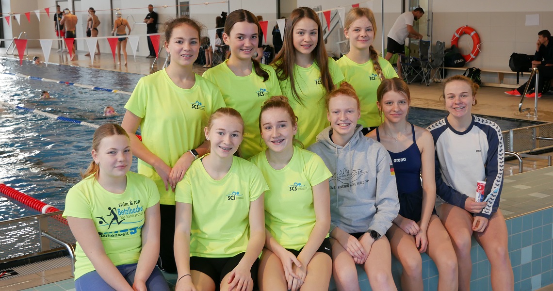 Mit fabelhaften 14.381 Punkten übertrafen Helena Gäntzle, Hannah Hecht, Pauline Heimrath, Emma Knerer, Sonja Laemmler, Heike Lanzl, Lisa Paulus, Emily Rödl und Anna Schwöd das Ergebnis aus dem Vorjahr um über 3.000 Punkte (die Punkte errechnen sich über die geschwommene Zeit im Verhältnis zur Weltrekordzeit) und können nun berechtigt auf einen Aufstiegsplatz in die Landesliga hoffen. Hier heißt es noch auf die Ergebnisse aus den anderen Bezirken bis Ende Februar abzuwarten. Besonders bemerkenswert ist, dass die geschwommenen Zeiten bei allen 34 Starts im Durchschnitt über Bestzeitniveau lagen und unglaubliche 9 neue Vereinsrekorde verbessert werden konnten. Mit ihrer Punkteausbeute waren die Schwimmerinnen vom Schwimmclub sogar deutlich schneller unterwegs als viele Mannschaften aus der höherklassigen Landesliga und stellen hinter der Mannschaft des SC Regensburg (Bayernliga) mit weitem Abstand von über 1.000 Punkten die zweitstärkste Mannschaft der Oberpfalz.