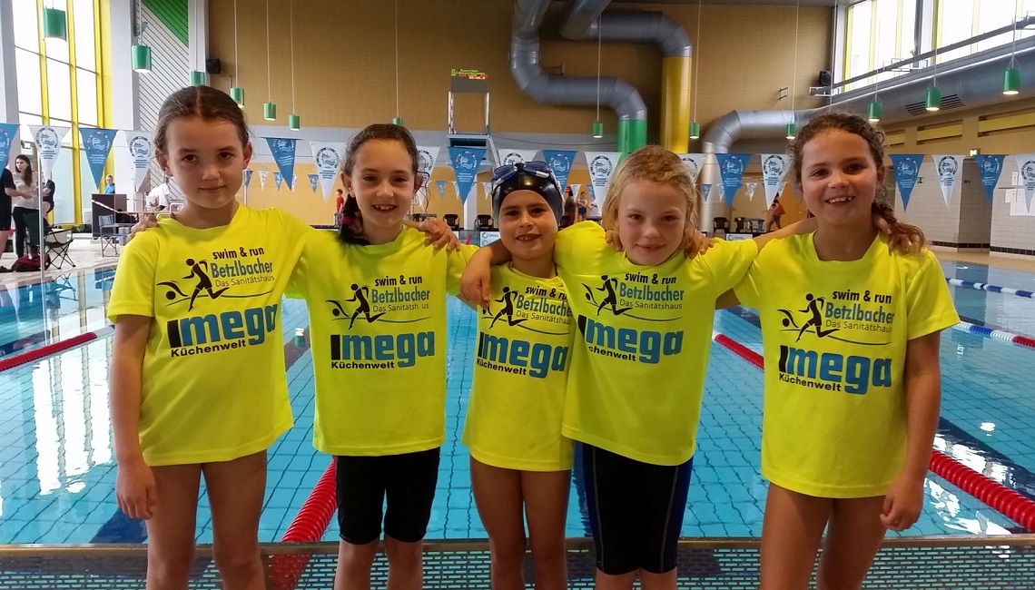 Zoe Seger, Julius Fuhrmann, Nico Stuber, Sarah Wenisch und Franziska Hiltl schwimmen auf Platz 1