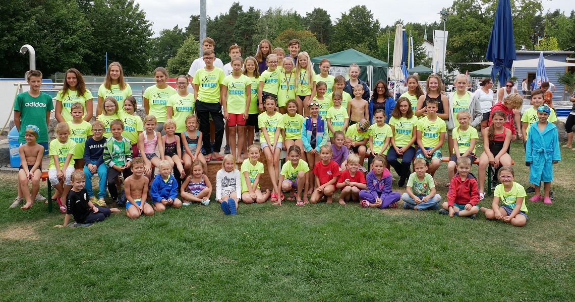 Nach Abschluss des Wettkampfes, an dem insgesamt 156 Kinder und Jugendliche teilnahmen, wurde im Freibad gleich im Anschluss das Vereinsjubiläum gefeiert. Bei den heißen Temperaturen freuten sich natürlich alle darauf, sich im kühlen Wasser austoben zu können. Neben Luftmatratzenstaffeln, Unterwasserparcours, Rutschen und Ballspielen waren auch Bierbänke für das gemütliche Beisammensein aufgestellt.