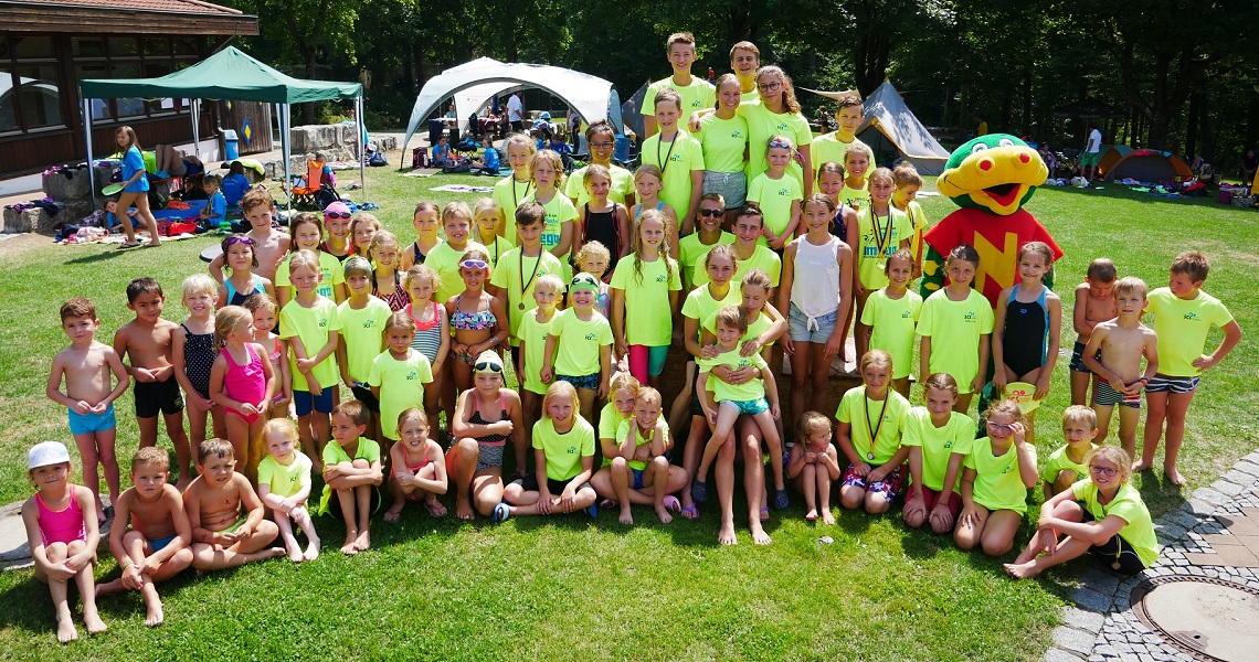Zum Abschluss der Schwimmsaison veranstaltete der Schwimmclub Schwandorf am Samstag, den 20. Juli, das 7. Wackersdorfer Panoramabad-Schwimmfest 2019 mit kindgerechter Einlage für die Jahrgänge 2012 und jünger, bei welcher die jüngsten Schwimmerinnen und Schwimmer erstmals im Rampenlicht standen. Unter der Schirmherrschaft von 1. Bürgermeister Thomas Falter und angefeuert vom 2. Bürgermeister Thomas Neidl und Sparkassen-Gebietsdirektor Wolfgang Heining, welcher mit der Sparkasse im Landkreis Schwandorf das Schwimmfest wieder finanziell unterstützt hat, begeisterten die über 150 jungen Schwimmerinnen und Schwimmer mit tollen Leistungen und durften sich freudestrahlend über viele Medaillen bei den Siegerehrungen freuen. Auch der Nabbi aus dem Nabba Dabba Doo Kinderland schaute beim Wettkampf vorbei und feuerte die Kinder beim Schwimmen an.