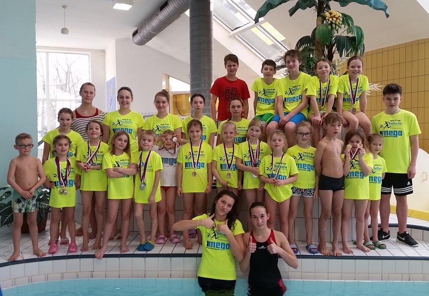 Am Samstag, den 28. Januar, lud der Schwimmverein PK Banik Sokolov zum 13. Neujahrsschwimmfest ein. Bereits um 07.45 Uhr machte sich der Schwimmclub Schwandorf mit einer Delegation von 29 Schwimmerinnen und Schwimmern auf in die tschechische Partnerstadt Sokolov. Für viele der größtenteils ganz jungen Schwimmerinnen und Schwimmer war es der erste Wettkampf außer Landes – dazu standen zum ersten Mal auch 50-Meter-Strecken auf dem Wettkampfprogramm. Trotz unbekannten Terrains konnten die Nachwuchstalente des Schwimmclubs 29-mal auf Platz 1, 34-mal auf Platz 2 sowie 26-mal auf Platz 3 schwimmen und zahlreiche Medaillen gewinnen. Alles in allem war es ein sportlich erfolgreicher Wettkampf in angenehmer, partnerschaftlicher Atmosphäre. Nach Wettkampfende konnten sich die Schwimmerinnen und Schwimmer noch im Hallenbad austoben, bevor es abends wieder mit dem Bus zurück nach Schwandorf ging, wo man gegen 19 Uhr einen schönen Wettkampftag ausgepowert aber rundum zufrieden beenden konnte.
