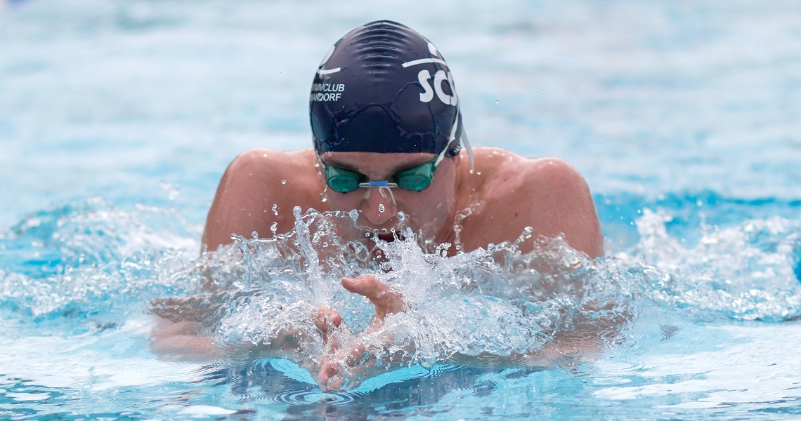 Erster Saisonwettkampf auf der Langbahn – Robin Swoboda schwimmt im Finale über 50 m Brust auf Platz 2